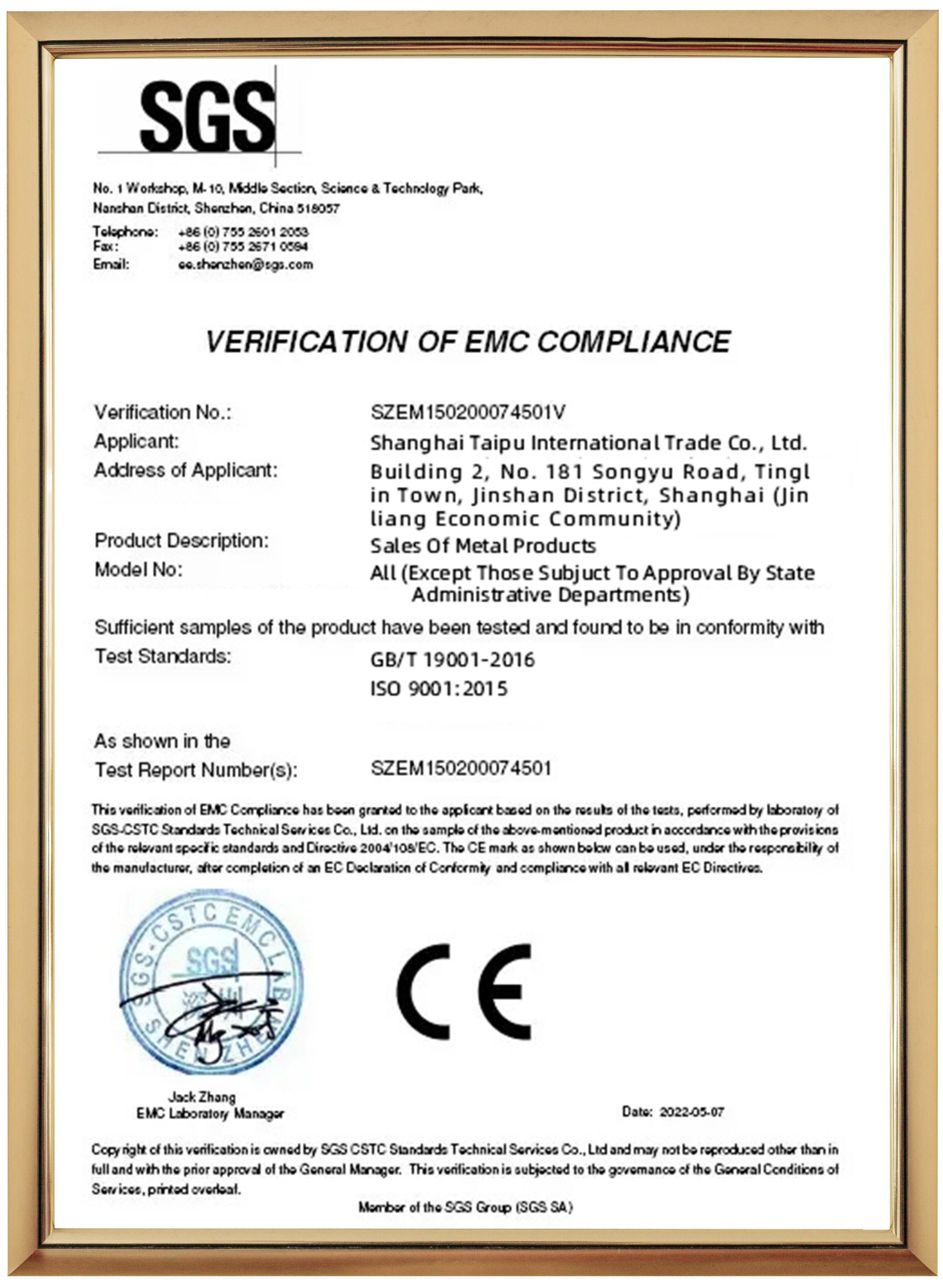 Наша продукция имеет сертификаты CE/EN10204/ASTM/Классификационного общества/CASO/BIS и другие. Все заказы проходят инспекцию TPI (SGS/TUV/BV и др.). Наш завод оснащен передовым иностранным производственным оборудованием для достижения интеллектуализации, модернизации и обновления, чтобы удовлетворить различные потребности клиентов! Друзья могут посетить наш завод в любое время, добро пожаловать в Китай!